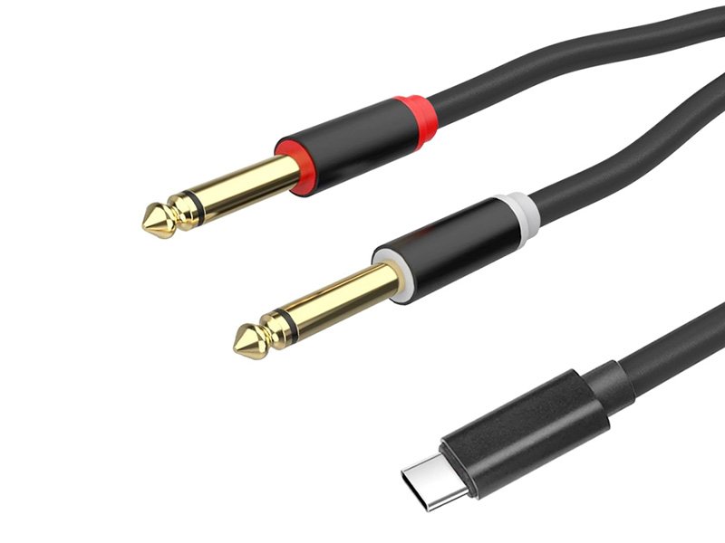 This USB TYPE-C Male To Dual 6.3mm JACK Male Audio Cable featuring high quality 3.5mm stereo mini jack with gold plated and standard USB Type-C connector for connecting mobile phone, car stereo, speaker etc. to enjoy music.